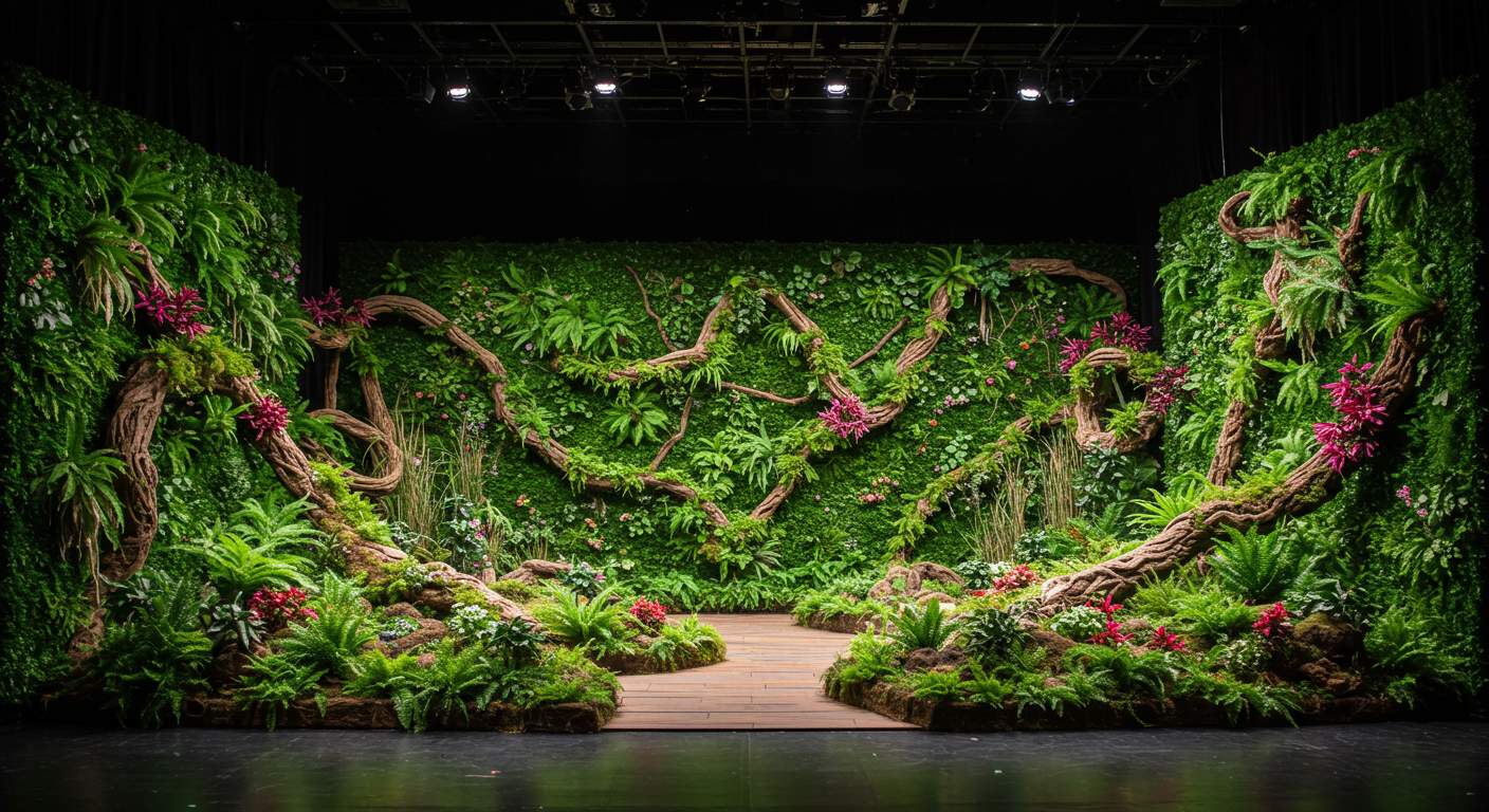 Вертикальные сады и композиции с растениями оживляют сценическое пространство и создают уникальную атмосферу