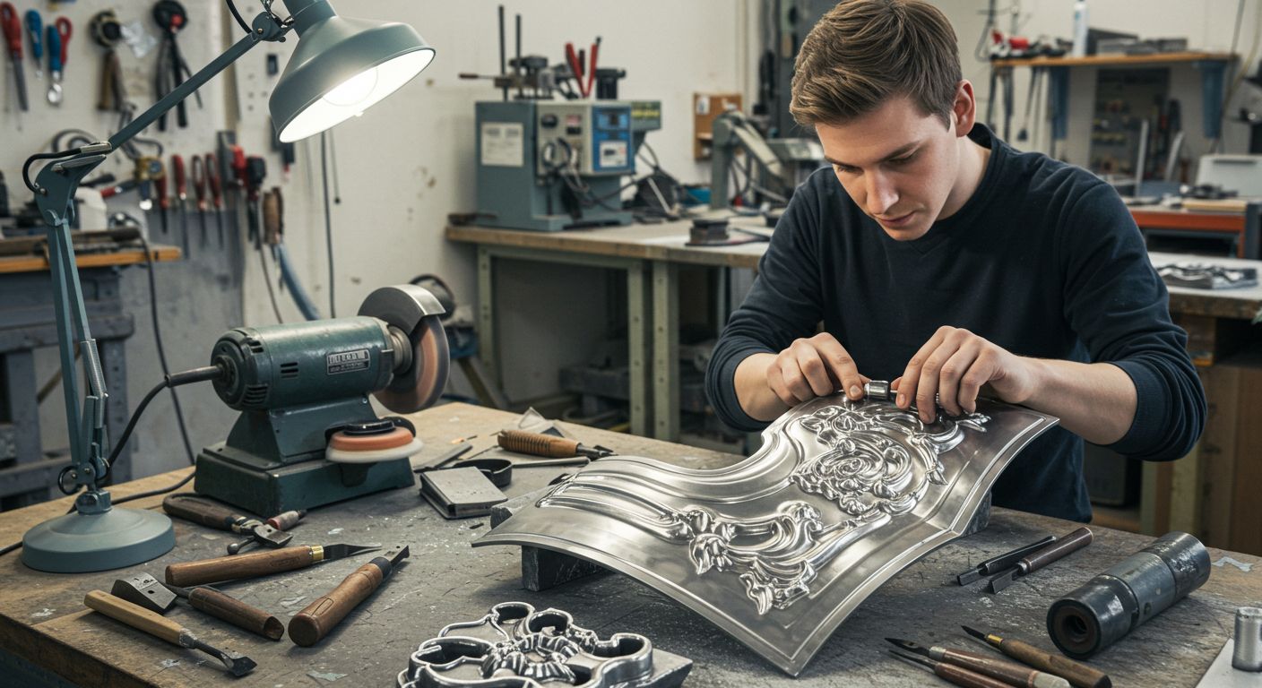 Особое внимание уделяется слою покрытия: слишком толстый слой может трескаться, а слишком тонкий — теряет блеск и однородность. Для создания рельефа применяют металлизированные пасты и смеси, которые наносятся слоями с последующей шлифовкой и лакированием для усиления блеска. Также возможна комбинированная техника: сочетание металлизированных слоев с текстурными пастами, патинирование и использование декоративных финишных покрытий создают уникальные визуальные эффекты.